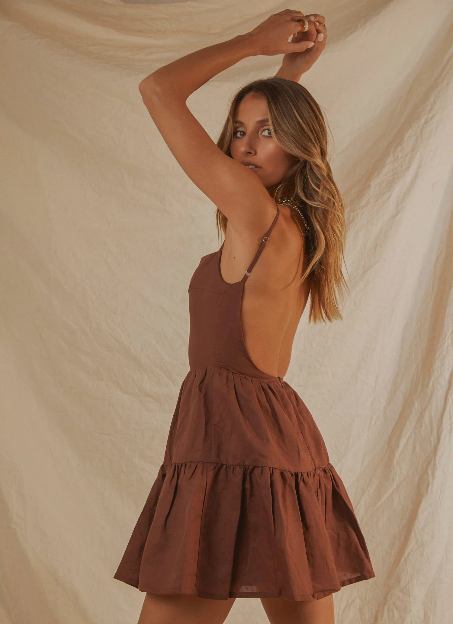 We are obsessing over the Love Signs Linen Mini Dress. Featuring a gorgeous low scooped back and tiered skirt, this dress will be a chic new addition to your weekend wardrobe rotation. Perfect for sunset drinks at your fave beachside bar. Pair with strappy mules and vintage inspired gold jewellery.