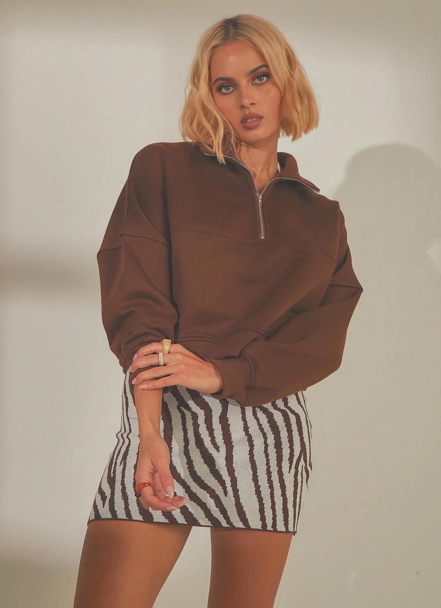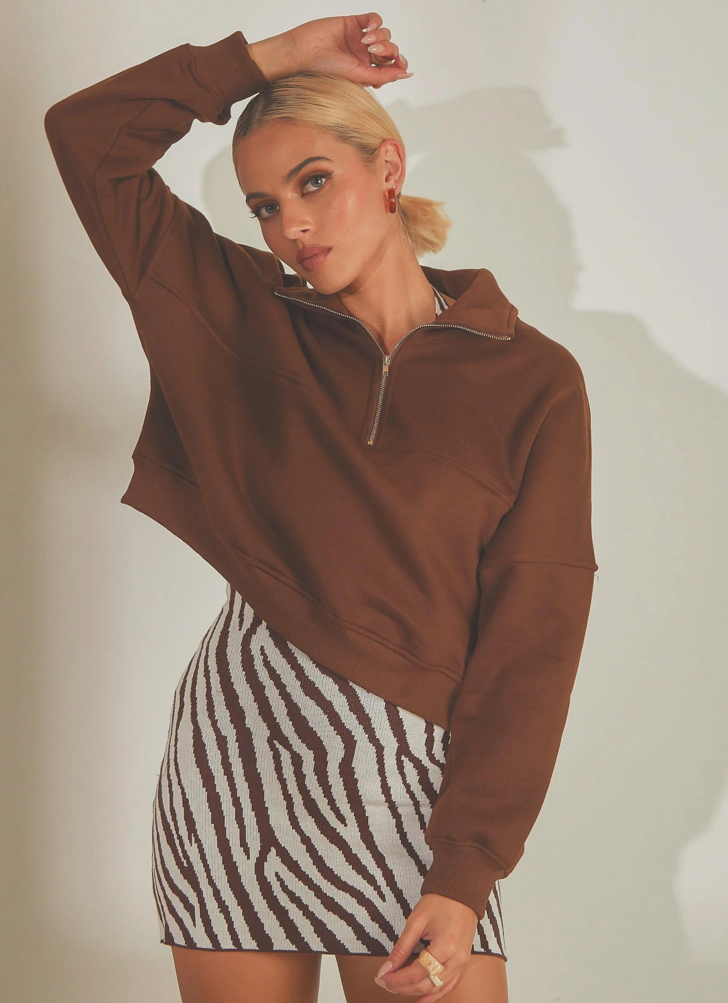 Peppermayo Exclusive Naya Quarter Zip Jumper – Choc Brown New & Most Loved